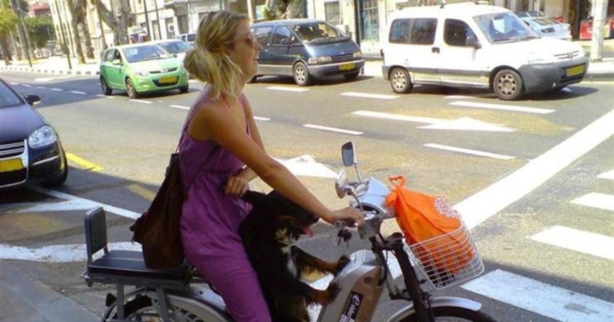 koira, nainen, skootteri