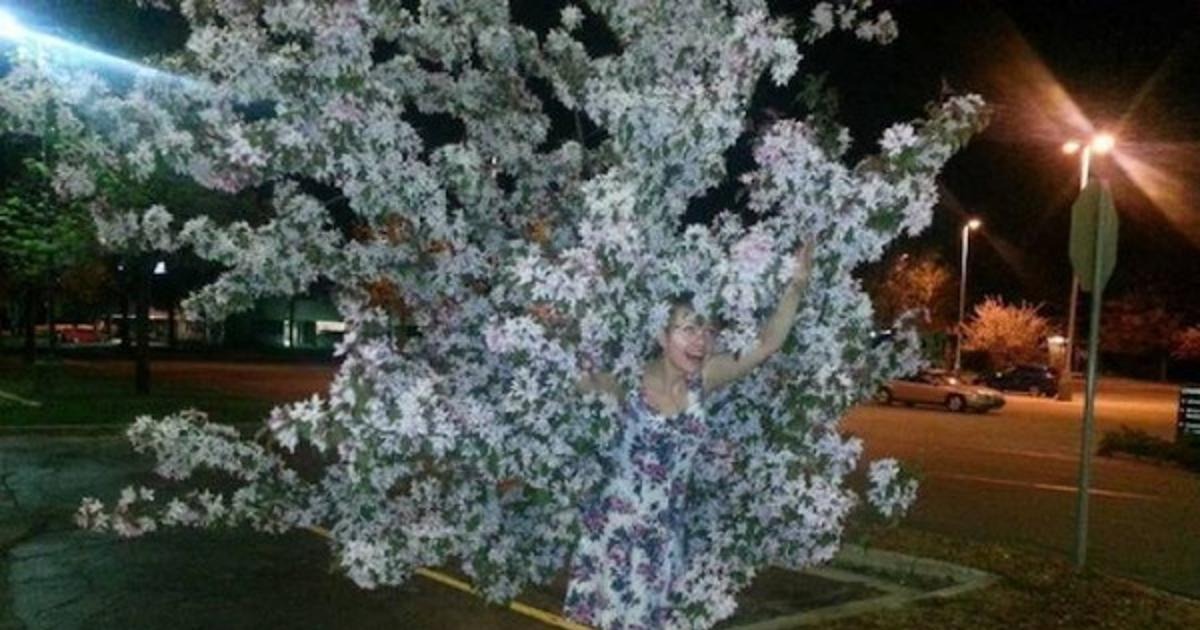 nainen, kukkia, naamiointi