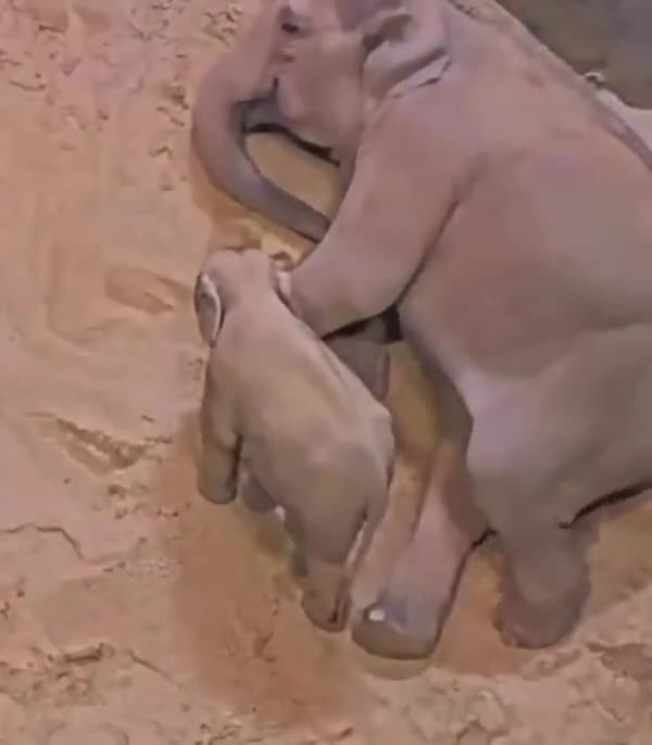 Niin pienet norsut nukkuvat äitinsä vieressä