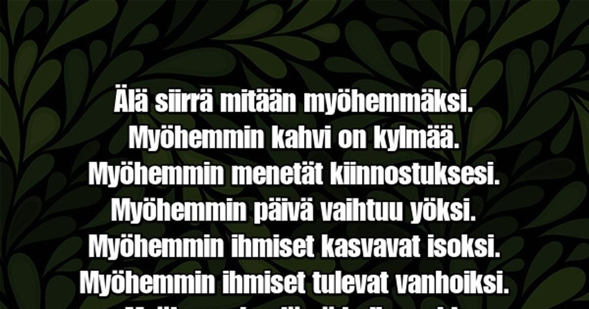 Älä siirrä mitään myöhemmäksi.