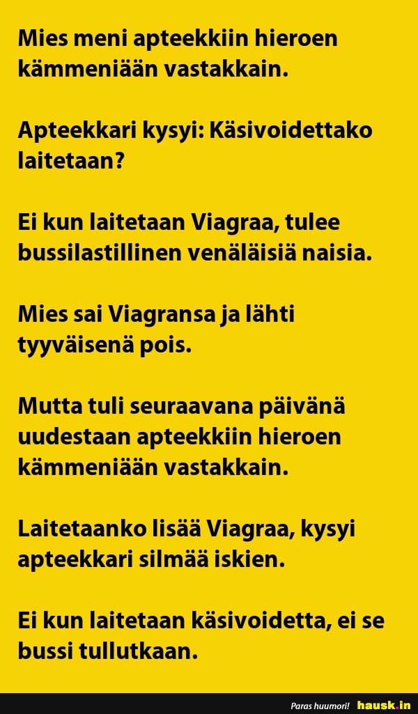 Mies meni apteekkiin hieroen...