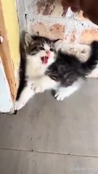 Pelästynyt kissa huomaa, että ihminen on ystävä.