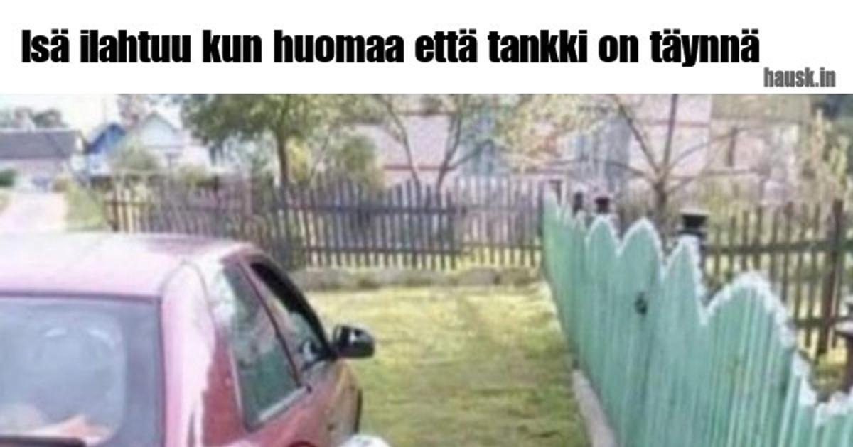 Isä ilahtuu kun huomaa että tankki on täynnä