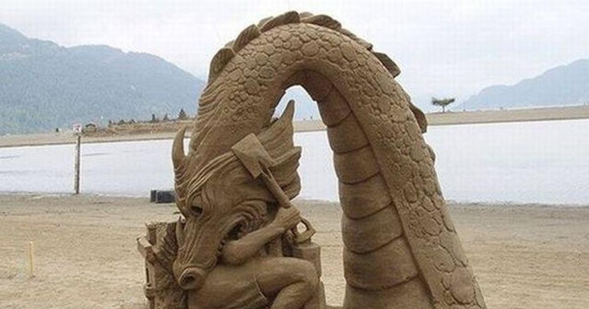 lohikäärme, veistos, hiekka