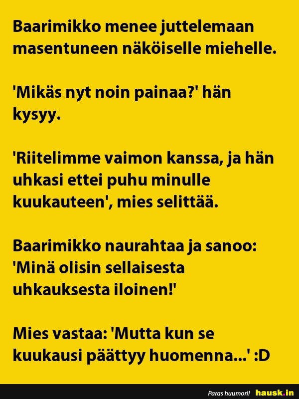 Baarimikko menee juttelemaan ...