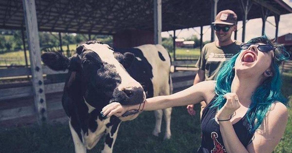 nainen, lehmä, purra