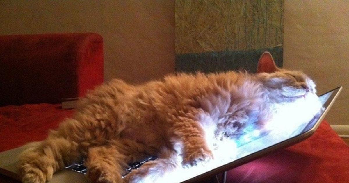 kissa, kannettava tietokone, unelma