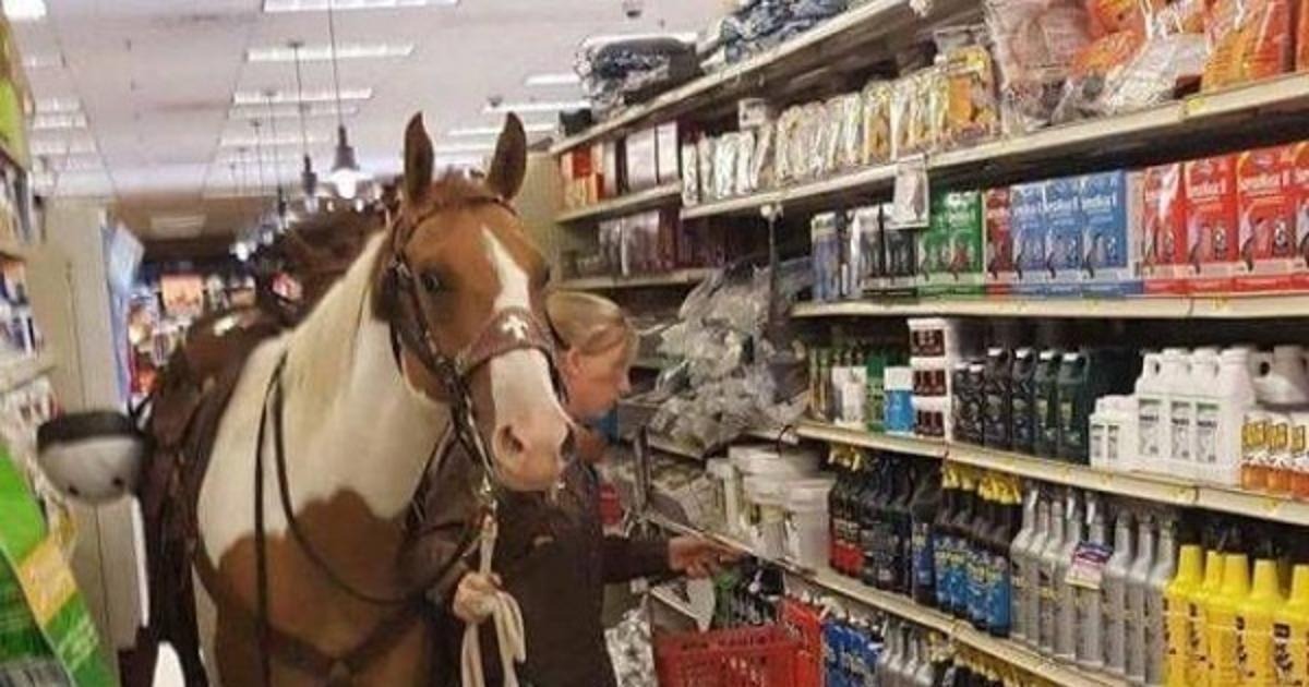nainen, hevonen, myymälä