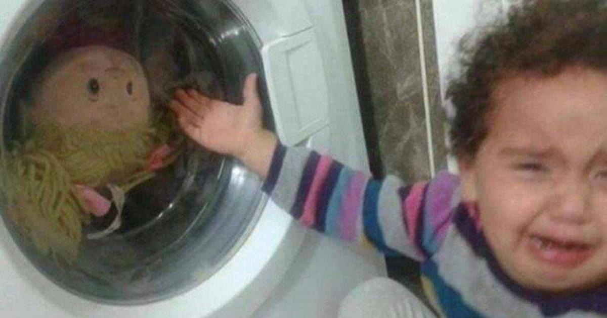 nukke, lapsi, pesukone