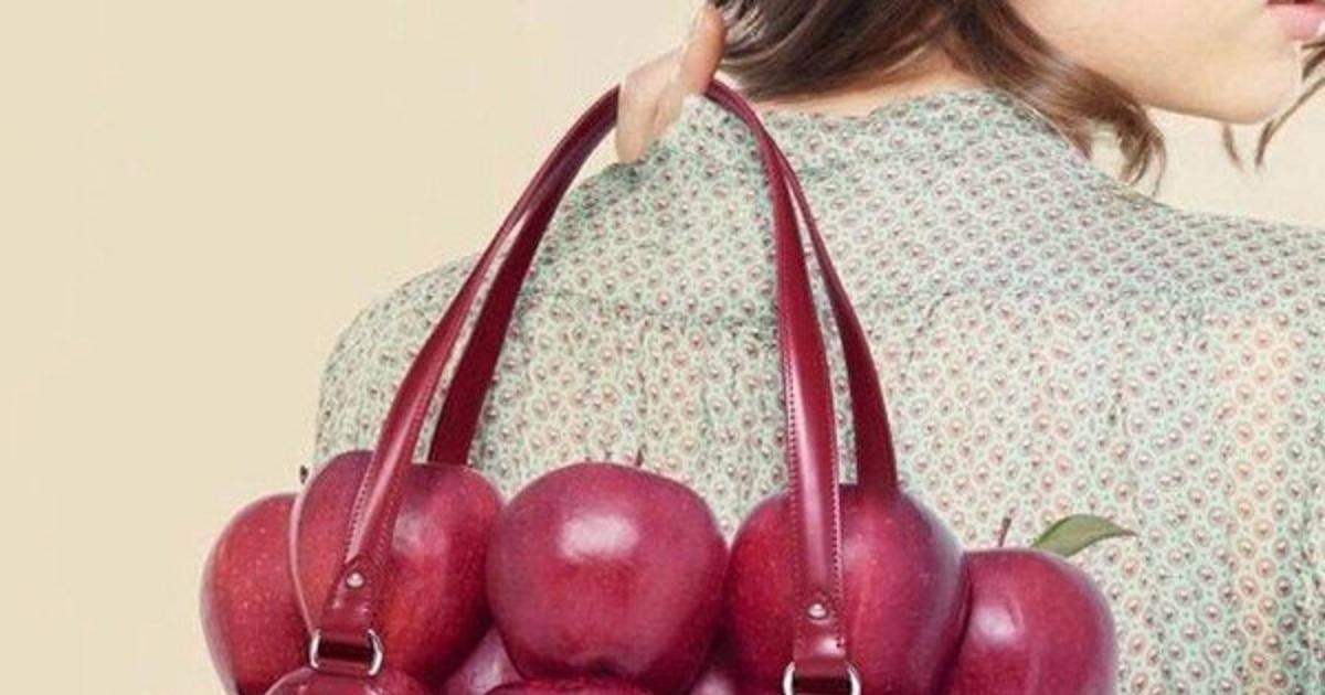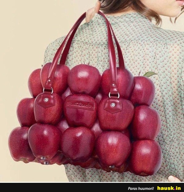nainen, laukku, omenat