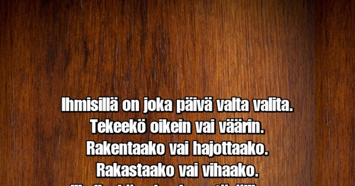 Ihmisillä on joka päivä valta valita.