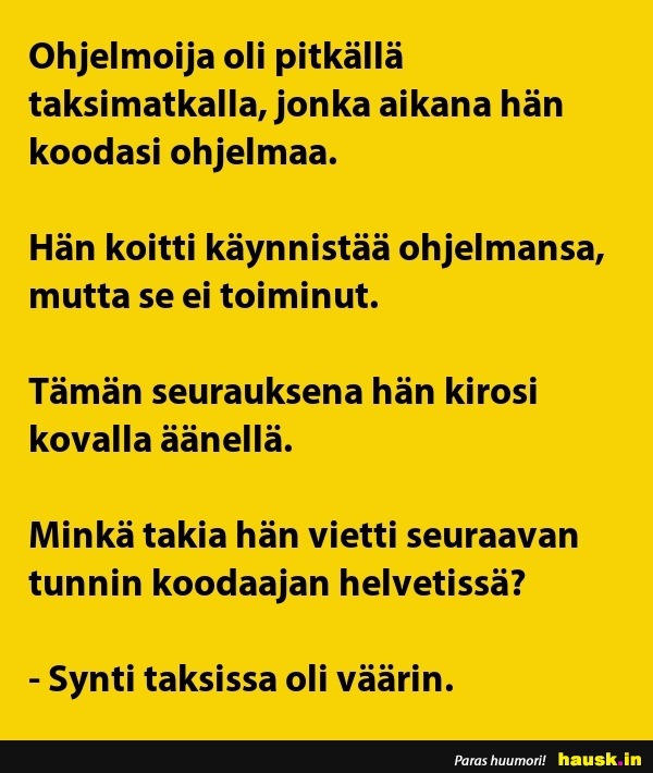 Ohjelmoija oli pitkällä taksimatkalla..