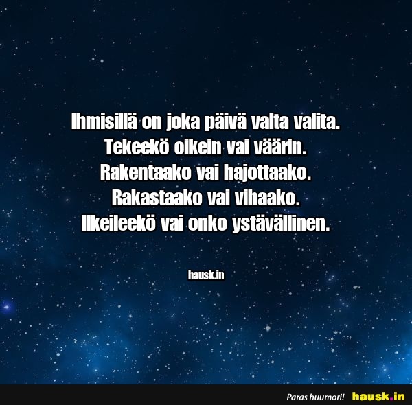 Ihmisillä on joka päivä valta valita.