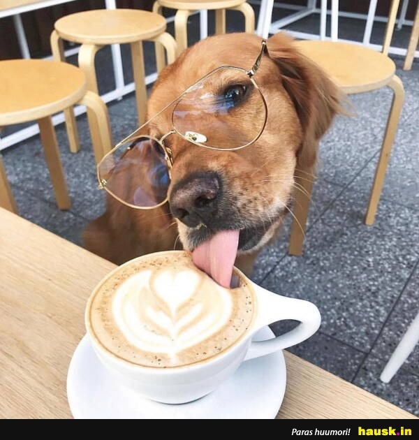 koira, kahvi, aamu