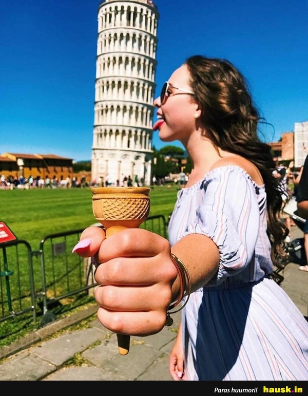 naiset, kalteva torni, jäätelö