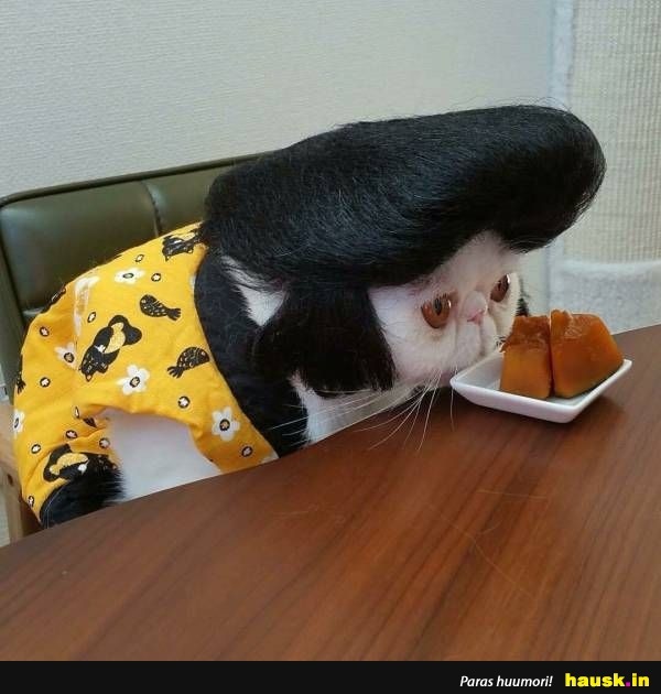 kissa, puku, aamiainen