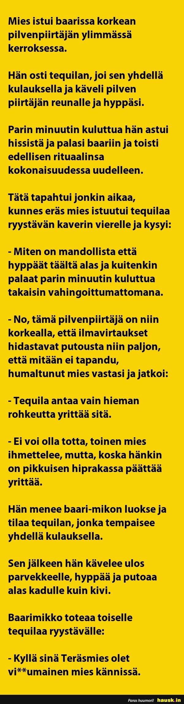 Mies istui baarissa korkean ...