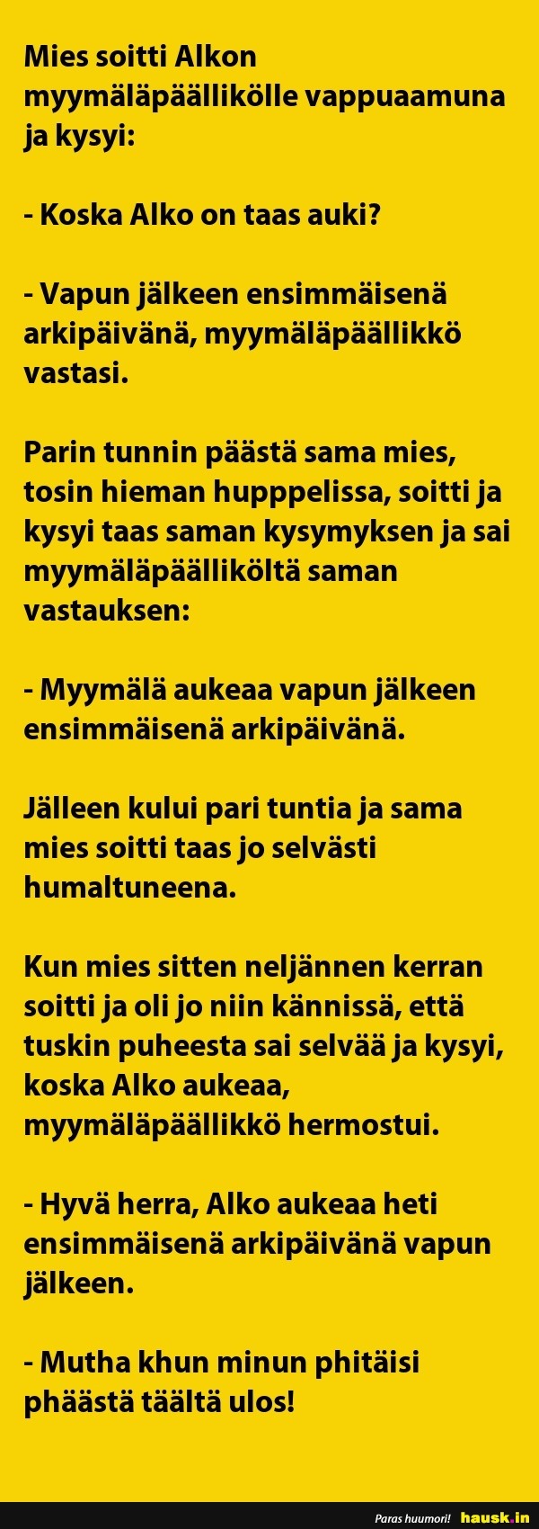 Mies soitti Alkon myymäläpäällikölle..