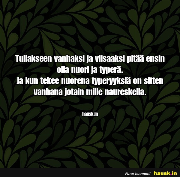 Tullakseen vanhaksi ja ..