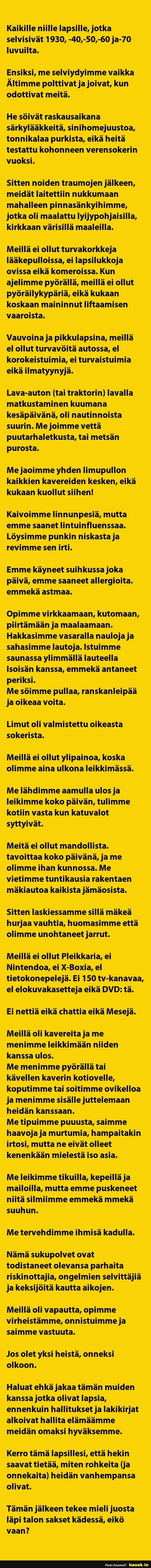 Kaikille niille lapsille, jotka ...