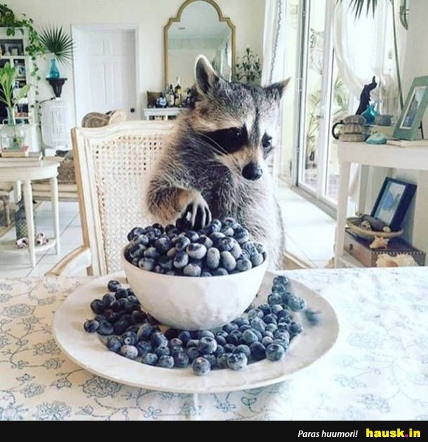 pesukarhu, mustikoita, aamiainen